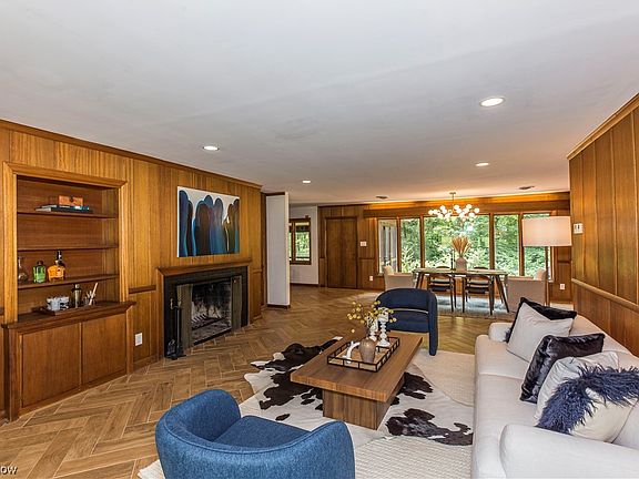 This stunning mid-century modern ranch in Bath Twp has undergone a complete renovation and offers you a fantastic opportunity to own a truly unique property near Cuyahoga Valley National Park. Situated on a 2.33 ac. lot w/ mature trees, this home provides a serene & private setting. With over 2,500 sq.ft., this home boasts 4 bedrooms and 3 full bathrooms. The master bedroom is a true sanctuary and has a fireplace for cozy evenings & private access to a screened-in porch. The living area has another fireplace and flows into the kitchen, creating a perfect gathering space for entertaining. The kitchen has been fully renovated and has high-end appliances. Open the doors to a second screened-in porch and step onto the brick patio where you can enjoy the wooded surroundings. The numerous updates completed further enhance the appeal of this remarkable home. In 2017, a new roof/gutters were installed, along with a high-efficiency boiler for the radiant heat system, a high-efficiency HVAC syst