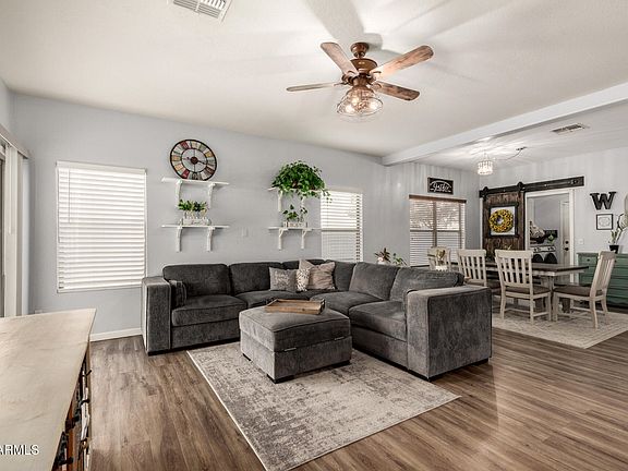 Stunning pool home in community close to everything. Explore the inviting and open layout with wood-look flooring, abundant natural light, and a neutral palette, perfect for entertaining and relaxation. Prepare delicious meals in the well-appointed kitchen, displaying oak cabinetry with crown molding, ample counter space, built-in appliances, a walk-in pantry, and an island. The primary retreat is downstairs and has a walk-in closet and a private bathroom with double sinks and a separate shower & garden tub. The loft/ den is a flexible space perfect for an office or gaming area. Secondary bedrooms have large closets. Out back, you'll have plenty of space for outdoor fun, including a cozy covered patio ideal for morning coffee and a sparkling pool for a refreshing time! Make it yours now