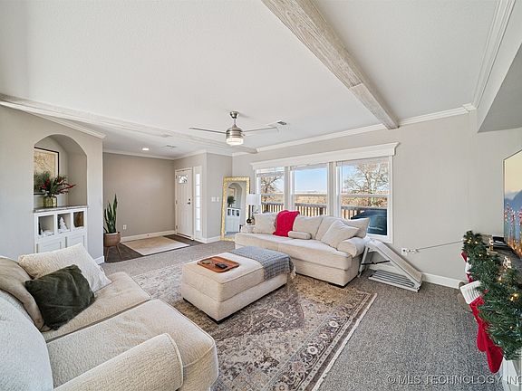 Experience modern farmhouse living with a contemporary twist in this beautifully updated 3-bedroom, 2-bath home perched on just over an acre just outside of Vinita. Nestled on a scenic hilltop, this home offers breathtaking country views through oversized windows and from the expansive front porch perfect for morning coffee or sunset gatherings. Inside, a stylish gray-and-white palette complements the open-concept layout, where the chef's kitchen seamlessly connects to the spacious dining and living areas. Impeccably cared for and very on-trend, this home delivers the ideal blend of comfort, style, and function. You'll love the peaceful privacy without sacrificing convenience, located just minutes from town and Grand Lake. Whether you're into entertaining, relaxing, or working remotely, this move-in ready home checks all the boxes for modern country living.