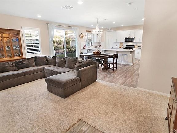 Step inside this beautifully appointed home and feel like you've just walked into the model home. Perfectly situated corner lot with super sized backyard and view of walkways that gives you a park like setting ambiance. Fruit trees, pergola for entertaining, low maintenance turf for water conserving and large side yard great for a dog run. Brand new carpet installed last week. Wood laminate floors are stunning. Huge great room, fun wall with chalk paint finish, perfect for home schooling and play days. Kitchen has upgrades such as farmer sink with quartz countertops, white cabinetry, plantation shutters throughout, downstairs laundry room, and perfect for guests, a downstairs bedroom and full bath. Upstairs game/loft area, huge master bedroom with dual sinks in master bathroom, separate shower and soaker tub. Community parking right outside, and the stunning elevation on this home is going to impress all who enter. Community amenities include pool, spa, clubhouse, bbq, firepit, outdoor cooking area, tot lot and picnic area.