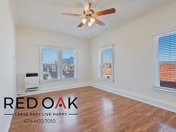 Inviting and Airy Studio on the Top Floor with an Incredible View, Ceiling Fan, Loads of Natural Light, In-Unit Storage, Stainless Steel Gas Range/Oven, and On-Site Laundry ~ In Prime LA! *LOW DEPOSIT* **Resident will enjoy a low security deposit of just $500 on approved credit as an added incentive for move-in* Step into Your New Studio Oasis! Situated Perfectly: Discover tranquility within this charming stucco building on a securely gated property. Clean lines and expansive windows welcome abundant natural light, crafting a serene and inviting ambiance. Classic Charm: Featuring hardwood-style floors, a gentle ceiling fan, and lots of natural light. Temperature Control: Enjoy the warmth of an efficient gas heater when the nights turn cold. In-Unit Storage: A large closet with custom built-ins helps keep your home organized. Sunlit Kitchen: Enjoy a lovely tile floor, stainless steel gas range/oven, and plentiful hardwood cabinets that promise clutter-free cooking. Dining in Style: Boasting a lovely dining nook right in your kitchen beside a sunny window boasting a fantastic view. Modern Bathroom: Rejuvenate in the delightful soaking tub/shower, enjoy custom tiling, and a hardwood vanity with extra storage and well-lit mirror Hassle-Free Utilities: Electric, gas, water, sewage, and trash services are included for a low monthly fee of just $45. Easy On-Site Laundry: Convenient on-site laundry facilities make everyday chores a breeze. Pet-Friendly Policy: This community warmly welcomes your small, non-aggressive pets with a minimal monthly pet rent. Perfect Location: Convenient to Koreatown and DTLA, with USC, Exposition Park Museums, and the Staples Center just moments away. The 10 freeway makes for an easy commute to DTLA or the beach. Make this fantastic studio space your new home! Available for an immediate move-in. LEASE TERMS: One Year Lease Pictures and descriptions are of EXACT unit Square Footage is approximate. Street Parking Only. Showings may not be 1-on-1. All information must be validated on Red Oaks Website since 3rd party websites can feed incorrect information.