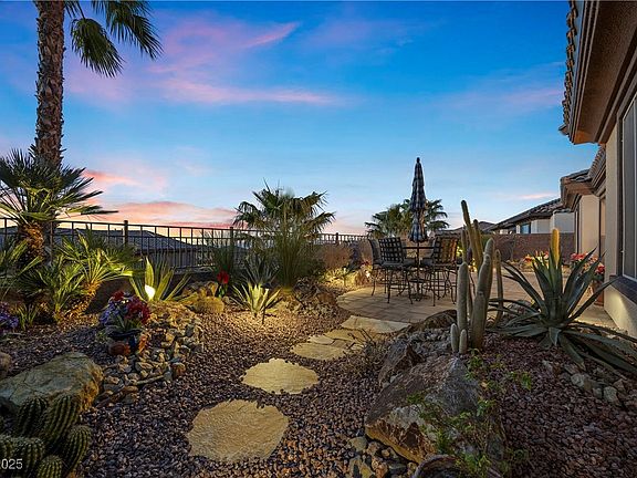 Discover refined living within the highly sought-after, guard-gated community of The Club at Madeira Canyon. This meticulously maintained single-story home presents 2,826 sq ft of luxurious living space, featuring 3 bedrooms, 3 bathrooms, and French door enclosed office. Enjoy relaxing outdoors with stunning mountain and city views. Over $200k in upgrades and renovations, including the removal of a wall to create an open floor plan, new quartz countertops, added walk-in shower, brand new Subzero refrigerator, custom wine cooler, automated shades, water filtration and conditioning system, ADT security system, finished backyard with landscaping and pavers, solar screens, fresh paint, and epoxy garage flooring. Residents enjoy 24-hour guard gated security, club house, fitness center, pool, cabanas, BBQ, tennis, pickleball, basketball court, and events. Situated in a prime Henderson location, this home offers easy access to shopping, dining, and entertainment off of Eastern and St Rose.