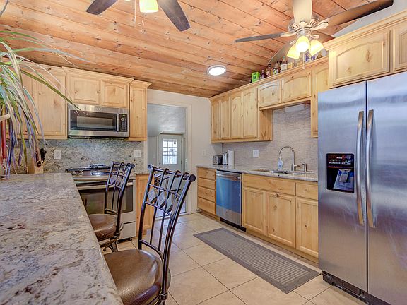 Close to the lake! This property offers a single family 3/1 home with upgraded kitchen and large bonus/laundry room.. There is covered parking in front. Behind the home is a 24x27 detached shop with additional living space including a bath with shower and a mini split. The shop also has a mini split (4 ton) for those who really use their shop! Behind the shop is more fenced and gated parking including a 16x16 covered parking structure that is 13.6 ft tall. The roof on the home is 4 years old. The roof on the shop is metal and just 2 years old. Both house and shop have on demand water heaters. House and shop each have 100 amp service. There is a 220 box for future hot tub. Garden area on timer irrigation. Washer, dryer and refrigerator can be included.