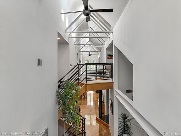 A Modern Waterfront Escape with Mid-Century Soul! Welcome to 275 Angola in Wolverine Lake: a one-of-a-kind architectural gem offering more than 4300 square feet of living space. Tucked at the end of a quiet street on 1.5 acres with over 200 feet of private canal frontage, this property offers the best of both worlds: a peaceful wooded setting with easy access to open water. Inside, the great room is a showpiece with soaring ceilings, exposed beams, and a sunken conversation pit wrapped around a fireplace. Walls of glass overlook the water and flood the home with natural light, while multiple living and entertaining zones flow effortlessly throughout. The updated kitchen features sleek cabinetry and new countertops, perfectly blending modern function with architectural charm. With 5 spacious bedrooms and 3.5 bathrooms, there’s room for everyone and then some. The primary suite offers its own serene views, and the completely remodeled third floor includes a custom walk-in closet and flexible living space. Gleaming hardwood floors, newer carpet, and thoughtful finishes are found throughout. Car enthusiasts and outdoor lovers will appreciate the 3-car attached garage and separate pole barn with additional space for 4 more cars, plus boat or RV storage. The finished basement adds even more versatility with tall ceilings, a second kitchen, a cedar closet and room to entertain. Enjoy the new wrap-around composite deck, mature landscaping, and a backyard dotted with apple, pear, plum, and cherry trees. Updates include a new roof (2022), dual furnaces and A/C units, a 75-gallon hot water heater (2021) and upgraded systems throughout. Located in the award-winning Walled Lake School District this home feels like a hidden lakefront retreat with convenience around the corner. Properties like this don’t come around often, come see what lake life can really look like. Welcome Home.