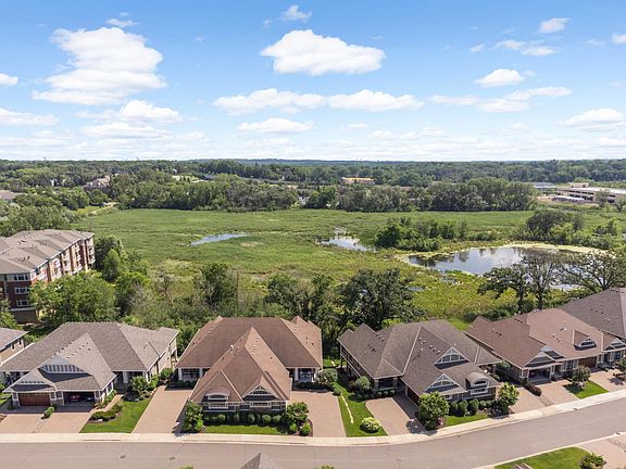 Located in the sought-after Legacy Oaks community, this 2015-built twin home offers convenient one-level living and a thoughtfully designed floor plan, on-trend design and finishes, and all the modern conveniences & features you desire including a 3-car garage. The stunning kitchen sets the stage with crisp white cabinetry, stylish quartz countertops, and a center island with dramatic waterfall edge. The kitchen flows seamlessly into the living room where a gas fireplace anchored by built-ins creates the perfect gathering spot. Clean lines, 10-foot ceilings and large south-facing windows lend an open & airy feel while the open layout connects kitchen, living and informal dining for effortless daily living or entertaining. Relax and enjoy your morning coffee in the adjacent sunroom with vaulted ceilings and access to the deck offering serene treetop and wetland views. The main level primary suite features trayed ceilings and an expensive walk-in closet with custom organizers. The luxurious ensuite bathroom has dual vanities, a soaking tub, and walk-in shower with glass enclosure and built-in bench, providing convenience and a spa-like feel. The convenient main level office provides the ideal work-from-home space, while the spacious mudroom with laundry keeps daily life organized. The finished walkout basement transforms this home into an entertainer's dream or your own cozy retreat. A second gas fireplace anchors the spacious family room while the wet bar makes hosting a breeze. Two additional bedrooms, a flexible den space, and a full bathroom provide endless possibilities for this space whether as guest accommodations, multi-generational living or recreation. Legacy Oaks offers a beautiful setting with wetlands and trails nearby including the popular Luce Line Trail, and provides easy access into Wayzata and surrounding Lake Minnetonka communities as well as downtown Minneapolis and Ridgedale Center. Seize this opportunity and schedule a private showing today.