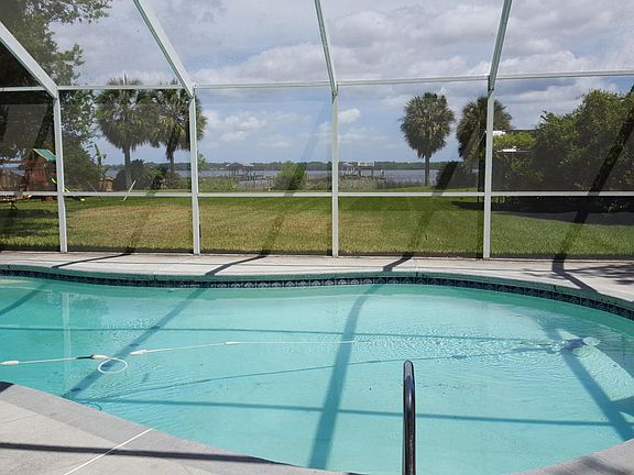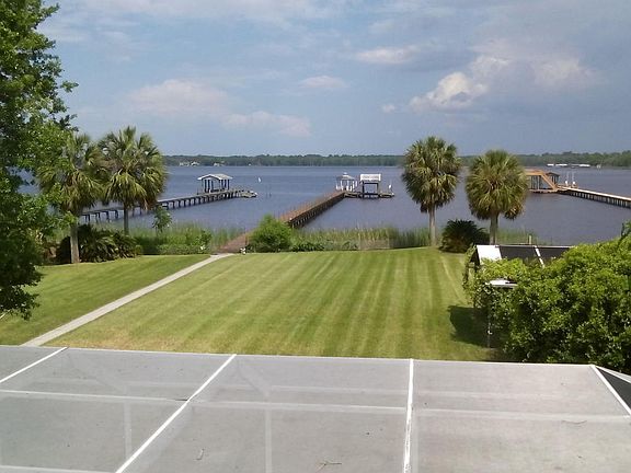 Doctor's Lake waterfront two story country charmer with metal roof, large front porch, detached two car garage, inground screened swimming pool, dock with boathouse, boatlift, gazebo, observation deck. Home has wood floors throughout, sunken living room with fireplace, very large eat-in kitchen,upgrades galore include all stainless steel appliances, crown molding, two walk-in pantries. Upstairs master has french doors with deck overlooking water. Bath has separate shower with clawfoot tub. Gorgeous view of waterfront. Irrigated lawn, large oak trees, manicured lawn. Lots of parking on concrete. Plenty of room for motorhome,boats/trailers. Maintenance free lap vinyl siding. New privacy fencing. Surround sound. Water softener.