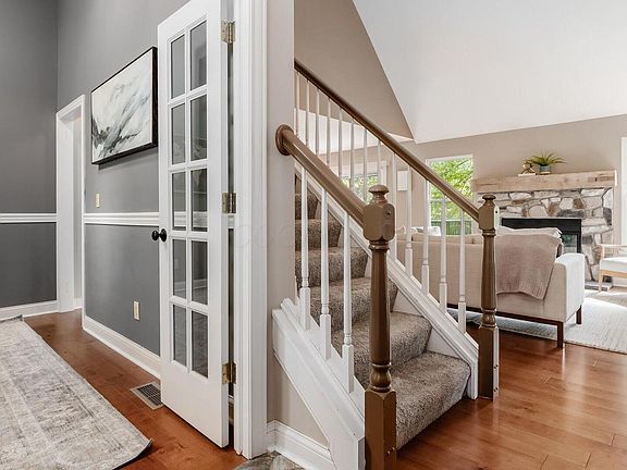 Tucked away on a quiet street and nestled on a private, wooded lot, this beautifully updated Granville home offers the ideal blend of comfort, style, and seclusion. Surrounded by mature trees and lush greenery, it's a peaceful retreat that feels worlds away — yet is conveniently located just minutes from the heart of Granville. Step inside to find a light-filled main floor featuring gorgeous hardwood floors, vaulted ceilings, and a spacious, open layout that makes everyday living and entertaining effortless. The living area is anchored by a charming wood-burning fireplace with a custom mantel — the perfect place to unwind on cooler evenings. The fully updated kitchen is both functional and stylish, with sleek quartz countertops, stainless steel appliances, and an open flow into the dining and living areas. Whether you're hosting friends or preparing a quiet weeknight dinner, this space is designed to make it easy. The large first-floor primary suite offers privacy and comfort, complete with new carpet and views of the surrounding greenery. Downstairs, the walk-out basement provides a versatile space for a rec room, home gym, or media area, along with plenty of additional storage. Step outside to the lower-level patio and soak in the hot tub while enjoying the beauty and tranquility of your own backyard. Upstairs, the expansive composite deck—built in 2022—is an incredible feature, offering the perfect setting for morning coffee, evening meals, or simply taking in the sounds of nature. Whether you're entertaining guests or enjoying a quiet moment to yourself, this outdoor space is a seamless extension of the home. With its thoughtfully updated interior, private wooded lot, and close proximity to downtown Granville, this home is a rare find — a peaceful haven that doesn't compromise on convenience.