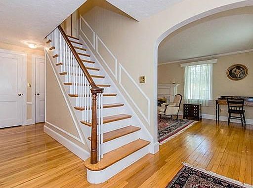 Move right in to this beautiful, elegant Colonial! Granite countertops in kitchen with recessed lighting, birch cabinets, pantry, and access to deck. Living room features a beautiful fireplace, custom built in bookshelves, and access to sunroom through glass sliding doors. Dining room has custom chair rail, and original valances. Second floor features three bedrooms, two full baths and laundry room, and access to walk up attic that is partially finished. Basement has wall to wall in recreation room with second fireplace, and a walk out to well landscaped private yard with two paver driveways and mature plantings and trees. Underground sprinkler system, mahogany garage door, central air conditioning, updated heating system, and possibility for third full bath in basement make this a must see! **Please call school department for elementary school placement.