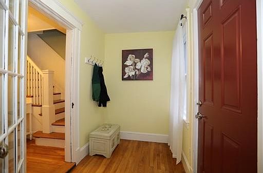 Charming 1930's Village Colonial with high ceilings, tons of Natural Light. Newer Kitchen with White Cabinets, Granite Counter Tops and Stainless Steel Appliances Opens to A lovely Formal Dining Room. Beautiful Living Room with wood burning fireplace, triple windows, and gorgeous hardwood floors. Bright front to back sun room off of living room. 3 Bedrooms and Full Bath on the second floor. Inground pool in the fenced in backyard for summer fun. Newer Roof, Gas Heating System, Replacement Windows, and Updated Electrical. Easy Walk To Hersey T, Broadmeadow Elementary School and Town Center.