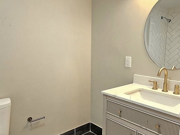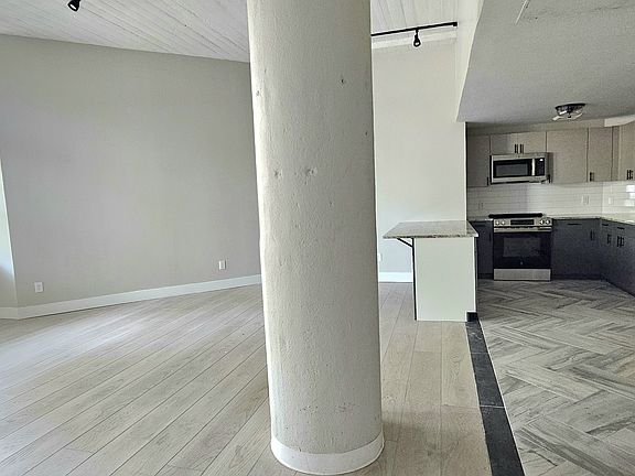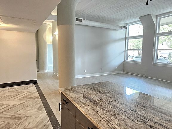 Unit offers 2 full bathrooms, microwave, central air, stainless steel appliances, industrial sized windows, and 15 ft ceilings.