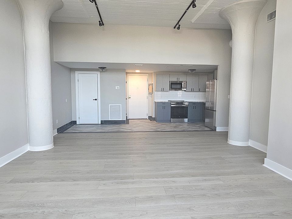 Unit offers central air, stainless steel appliances, microwave, industrial sized windows, 15 ft ceilings, lots of closet space and TONS of natural lighting.
