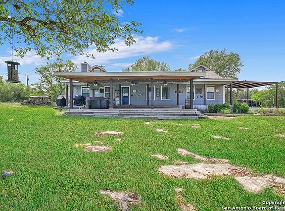 With 5 acres filled with peace and quiet, gorgeous views with privacy, and a Hill Country setting you will fall in love with! Gorgeous huge front porch. Great for hosting a family gathering or taking in a quiet sunset. Level, all usable land. HVAC replaced in 2021 with a 10 year warranty and roof was replaced by previous owners in 2018. In the front of Bear Springs Ranch. Easy coming and going home. Solar panels will be paid off at closing so new owner will have them free and clear. Seller paid nearly 50k! 20 minutes away from Medina Lake, Only 12 minutes from Paradise Canyon, HEB near by , 24 minutes away from Castroville!