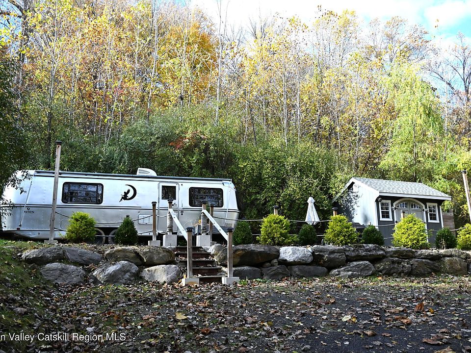 Welcome to Camp Luna, a fun little Catskills getaway! This 4.11-acre property offers a unique blend of rustic comfort and future potential in the heart of the Hudson Valley currently operating as a short-term rental retreat, this distinctive property includes a vintage 1984 Avion trailer with a full kitchen and bathroom-ideal for weekend