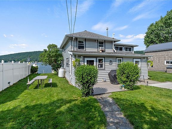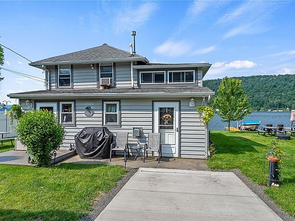 Looking for Lake front property then look no more!!! The front door opens into the beautiful eat in kitchen with island, the living room welcomes you with awesome views of the DeRuyter Reservoir lake. Formal dining room with lake views, remodeled full bath down, bonus room and then upstairs with 3 good size bedrooms and remodeled full bath. This lake home offers so many updates to mention and so much more. Large covered deck and open deck. Plenty of lawn, which goes down to the dock. But wait behind the home is another parcel with 2 car garage, washer and dryer, patio and plenty of parking which most lake properties don't have. This is a must see property, nothing to do but move in.