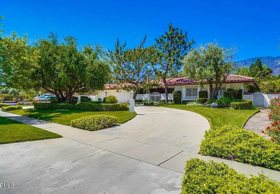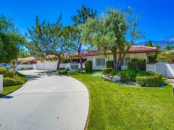 This lovely Upper Foothills Upland home has a circular driveway with meticulous landscaping and majestic mature trees, with views of the mountains. You enter the home through a gated courtyard as it leads you to the front door. Once you are inside this lovely property, there is a formal entry, step down grand formal living room, and a step up dining room with sliding doors accessing the backyard. The kitchen is to the left of the entryway with an eat-in kitchen, a large family room with a fireplace, and oversized sliding doors leading to the patio. The laundry room is next to the family room with a power room. There is direct access to the home through the 3 car attached garage. The master bedroom is located at the northeast side of the home, which has a large walk-in , master bathroom, a double sink and a sunken shower and a door to the backyard. Conveniently located in the hallway, there are built-in storage closets with drawers. The additional 3 bedrooms are located southeast side of the home and the second bathroom is located in the hallway for guest use with a double sink and a tub/shower. There are more storage closets adjacent to the 3 bedrooms. One of the bedrooms has built-in bookshelves and storage that could be used as an office. The backyard has lovely and is covered with grass with mature fruit trees (lemon, fig, and orange trees). The outside staircase takes you up to the amazing terraced yard with a pergola covering the seating area, and tranquil rose garden. There are endless possibilities to make this your dream home. Please contact me for your private tour of this amazing property