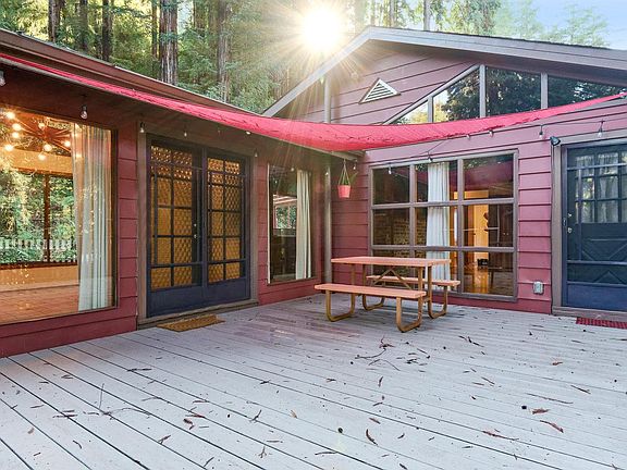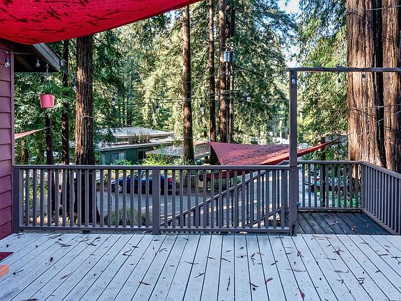 Rustic, beautifully maintained home in the redwoods. Steps away from Fall Creek Unit of Henry Cowell State Park and easy walk to town. House has skylights and large windows looking out to park-like yard. Retreat to backyard gazebo for view over the property. Inside the well appointed kitchen has cork floors; hardwood floors throughout rest of house. Updated electrical; Instant Insteon lighting, spacious storage area in attic. Large, sunny front deck, Solar sails over deck and parking. EV. outlet for car charging. Very friendly neighborhood.