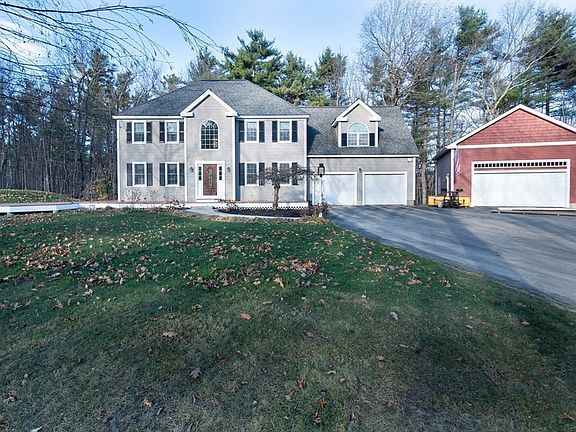 Seeking privacy yet convenience? This better-than-new home is located in a premier neighborhood towards the end of a dead-end, private road surrounded by protected conservation lands yet close to area amenities and highway access. A spacious and thoughtful layout, this home is ideal for those seeking plenty of space both indoors and out. Main floor has stunning custom walnut island, abundance of cabinet space, a bonus playroom/office/den, and wood floors throughout. Upstairs are 4 spacious bedrooms, including a master suite with its own full bath and walk-in closet. The finished basement with a built-in bar area is the ultimate entertainment space, watching football or hosting friends! Step outside to the expansive porch area, surrounded by woods- an ideal spot for peaceful sunsets or hosting BBQs! With plenty of room for multiple vehicles, a workshop, or home gym, the heated detached garage with a lift is the car enthusiast's or hobbyists' dream! Endless possibilities here! No HOA.