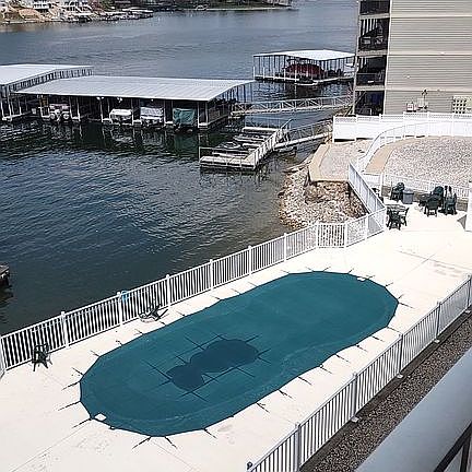 You can not beat this location right off of Bagnell Dam Blvd. Walking distance to the strip where you have shopping, bars, restaurants, car shows and parades. Updated LVP flooring through the main living are, porcelain tile back splash and ceramic tile porch. Master bedroom has an ensuite with double sinks, large shower and walk in closet. Enjoy sitting on your porch with a beautiful view of the lake and pool. When you are ready for some fun, take the elevator down to the docks or the pool. 2 docks come with this condo. This complex no longer allows short term rentals. Owner/agent. Buyers agents welcome.