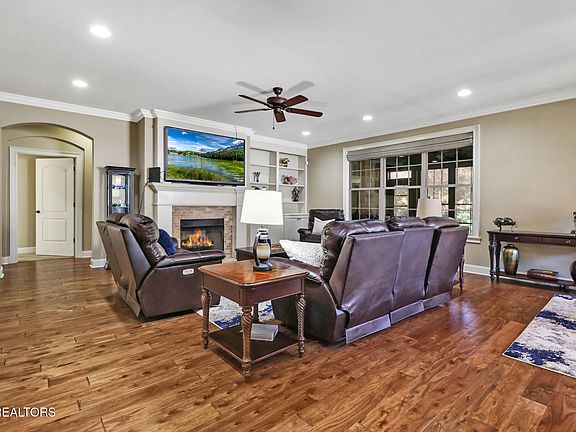 Welcome home to this beautiful 3-bedroom, 2.5-bath brick and stone retreat perfectly situated on the 18th fairway of Heatherhurst Crag in Fairfield Glade! You'll love the peaceful golf course views and the thoughtful design that makes this home both comfortable and elegant. Inside, you're greeted by rich hardwood floors, crown molding, and tray ceilings that add warmth and style. The open floor plan features a cozy living room with a gas fireplace and built-in shelving — the perfect spot to relax or entertain. The kitchen is a cook's dream with granite countertops, custom cabinets, stainless steel appliances, and a spacious island with breakfast bar for casual dining. The master suite is a relaxing escape with large windows overlooking the greens, plus a luxurious ensuite bath with double vanities, soaking tub, and separate shower. Guests will appreciate their own private ensuite bedroom at the front of the home. The 3rd bedroom has a wall of built-in shelving to easily convert this room into a den or office. Enjoy the outdoors year-round in the enclosed sunroom, complete with heating, air conditioning, and a second fireplace — ideal for cozy evenings or morning coffee. Step outside to the back deck and take in the peaceful golf course setting surrounded by mature trees and beautiful landscaping. Extras include a whole-house generator, walk-in crawl space with workshop and storage, and a roomy two-car garage. Located in the heart of Fairfield Glade, you'll have access to all the amazing amenities this community offers — golf courses, lakes, walking trails, fitness centers, and more. This home has it all — comfort, quality, and a view you'll never get tired of! Furniture in the home is negotiable.