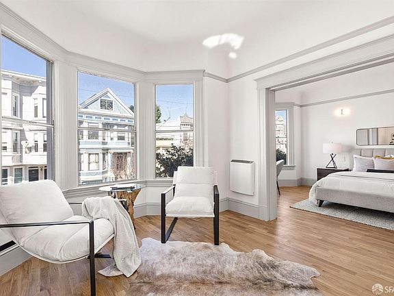 Timeless Victorian Meets a Touch of Modern. This carefully restored 1909 Victorian condominium offers the perfect blend of historic charm and contemporary features. Positioned on the middle floor of a classic three-unit building, this thoughtfully renovated home showcases beautifully preserved period details, including soaring ceilings, intricate moldings, and gleaming refinished hardwood floors. Sunlight pours through expansive bay windows, highlighting the spacious and airy interiors. The brand-new kitchen is a chef's dream, featuring quartz countertops, custom cabinetry, high-end stainless steel appliances, and an open layout that seamlessly connects to the dining and living areas that are ideal for entertaining or every day living. The inviting living room, complete with a decorative fireplace, exudes warmth and character, making it the perfect space to unwind. The generously sized bedrooms offer a tranquil retreat, enhanced by large windows that frame charming neighborhood views. A stylishly updated bathroom, in-unit laundry, and upgraded electrical and plumbing systems provide modern convenience without compromising the home's historic soul.