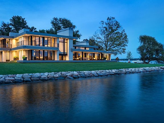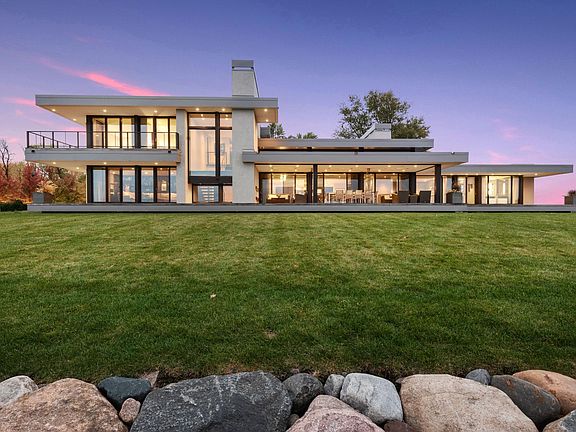 Expansive 180-degree views of Lake Minnetonka with 233' of frontage. Views from nearly every room nestled on over an 1/2 acre lot on Sunrise Point on Gideon Bay. The Stinson & Streeter design together bespoke a one-of-kind residence. The design creates an effortless floor plan with all public spaces open to expansive decking and the lake. With unparalleled vision and exemplary craftsmanship, this residence delivers the ultimate lifestyle experience. This inspired residence is infused with tranquil energy of the water and sophisticated spirit. All upper bedrooms have a deck and views of the lake. Every detail was thought through when building to include solar panels for amazing low energy costs.