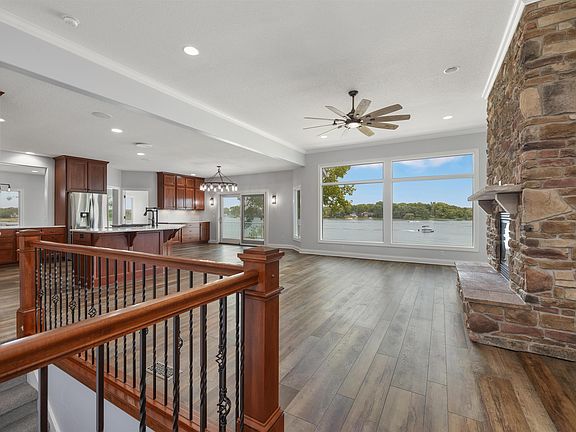 Stunning Lakefront Home with 139 Feet of Sandy Beach Frontage! This exceptional Bob Busher-built home (only 11 years old) offers breathtaking views and a spacious, open floor plan designed for lake living. Enjoy 139 feet of sandy beach along the shoreline, perfect for swimming, relaxing, or launching watercraft. Bounus lakeside garage for lake toys and yard equipment. With 4–5 bedrooms and a walk-out lower level, there's plenty of room for family and guests. The main-floor master suite offers privacy and convenience, while the four-season sunroom showcases panoramic lake views year-round. A large deck overlooking the water and a generous lakeside yard make outdoor entertaining a dream. Additional highlights include: Three-car garage Bright, open kitchen and living areas Beautiful sunsets and big water views Peaceful, private setting Pool Table included. A rare opportunity to own a modern lakefront retreat with all the space, style, and views you’ve been dreaming of!
