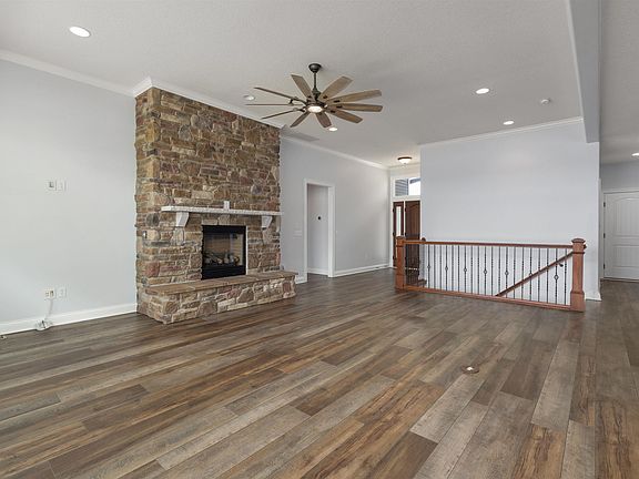 - Bar, Breakfast Bar, Sound System, Bookcases, Built-in Desk, Walk-In Closet(s), Countertops-Solid Surf, Stone Counters, Open Floorplan, Main Level Bedroom Suite