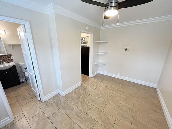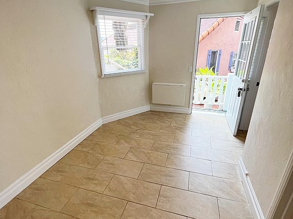 THIS CHARMING STUDIO IS SITUATED IN AN OLD-SCHOOL EUROPEAN STYLE BUILDING NESTLED IN LAGUNA JUST STEPS FROM THE BEACH DOWNTOWN SHOPS & RESTAURANTS. The light colored tile flooring and window provide ample natural light, creating a bright and inviting atmosphere. The ceiling fan helps keep the space cool and comfortable. The bathroom features a newer vanity, attractive tiled accents on the wall, a stall shower, and a linen closet for added convenience. In the kitchen, you'll find stainless steel appliances, including a gas range, an over-the-range microwave, and a refrigerator to meet all your culinary needs. The main living space measures 8' x 13'. The building boasts incredible grounds and community courtyards, providing a serene sanctuary to relax and unwind. The building is privately gated, ensuring privacy and security. Overall, this studio is the perfect little getaway for anyone who enjoys the beach. (Laundry on-site, not in unit)