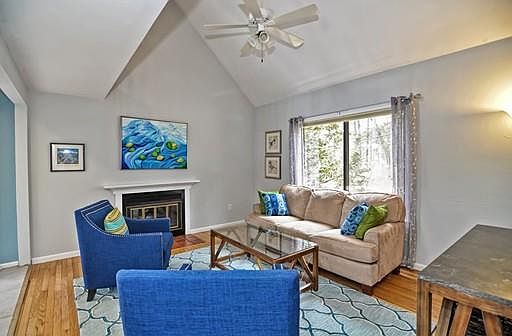 - Liv Dscrp: Fireplace, Flooring - Hardwood, Ceiling - Cathedral, Ceiling Fan(s)
