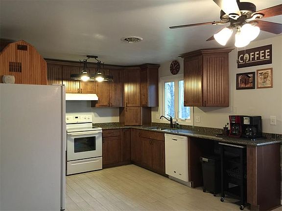Country living close to town. 4 bedroom, 2 bath raised ranch home with large walk-in closets. Remodeled kitchen featuring birch cabinets, quartz counters, and ceramic tile floor. Updated baths, large deck and private back yard. 2 car integral garage plus 3 bay detached garage/shed. City water and new septic system.