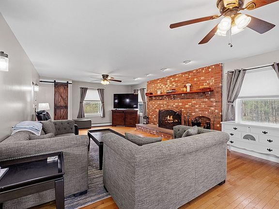 Set back several hundred feet off the road and down a private driveway you will find an oasis in the woods. Spread out, enjoy a firepit, ride your ATV’s and don’t worry about neighbors! This 4+ bedroom, 4.5 bath home has four levels of living to enjoy, spread out & accommodate all the generations! Step right into a spacious foyer and tothe left you will find a giant front to back living rm w/ wood burning brick hearth and surround, a heated sunroom w/ brand new Harman pellet stove, not to mention anoversized eat-in kitchen w/ upgraded cabinetry, S/S appliances & giant peninsula to fit the whole family! The 2nd fl has 4 good sized bedrooms & the 4th floor has apotential bonus suite complete w/ bedroom, living area & ¾ bath, & walk-in closet. The lower level is an entertainment paradise – make it a movie room, gym area. So many upgrades to mention, they include: central A/C, recessed lights, Generac wired in generator & more. Showings begin at open house 5/10 from 4-6pm.