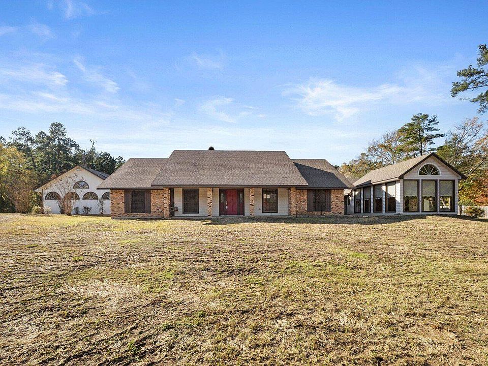 This large brick home is an ideal location for anyone looking to purchase a home within a short drive to Toledo Bend Lake. The location is great for a summer retreat or for those who enjoy the water lifestyle. There is great fishing, hunting, skiing, and camping. This attractive home provides 5,693 square feet of living area which includes 5 bedrooms, living room, dining room, den, game room with pool table and bar, kitchen with granite countertops, double oven, range, 3 full bathrooms, 1 half bath and indoor swimming pool. The master bedroom has walk in closet, wood flooring and gas fireplace. The large master bathroom contains his & her sinks, garden claw tub, ceramic tile walk in shower which has immediate access to the large indoor swimming pool with half bath. The amazing backyard consists of large wood decks overlooking outdoor kitchen area, coy fish and pier. Additionally, there's a large work shop, 2 horse barns and 2 stocked ponds for fishing and 2 car garage.