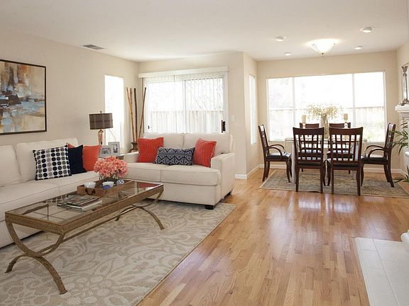 Updated 2 story townhome, end unit, spacious 4 bedrooms with 3 full baths, open floor plan, formal entry with marble flooring, a bedroom with full bath downstairs, solid wood flooring downstairs & upstairs, granite kitchen counter top with newer appliances, large pantry closet, over sized master bedroom with high ceiling & walk-in closet, double vanity sinks in 2 bathrooms, inside laundry, low HOA dues of $227/month, good size patio/yard for entertaining & gardening, attached 2 car garage with opener, Curtner Elementary, desirable location, close to schools, shopping & freeway access.