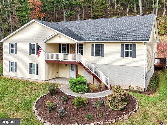 Charming 3 bedroom, 2 bath ranch home on 3.18 Acres – Built in 2016! This well-maintained 1,740 sq ft single-family home, built in 2016, offers energy efficiency, quality construction, and a private, peaceful setting in a desirable asphalt road subdivision. Featuring 3 bedrooms, 2 full bathrooms, and a full walkout basement that is partially finished and ready for your final touches. Spacious kitchen with ample high-end cabinetry and butcher block island. Oak hardwood floors throughout; ceramic tile in the bathrooms and a large primary suite with full ensuite bath and 8'x8' walk-in closet. The seamless flow between kitchen, living area, and back patio is great for entertaining! There is also an oversized heat pump for efficient climate control. Some of the exterior features include a 2-car garage with 10'+ ceiling height, extended driveway parking and 240v separate power outlet for welding or charging station. A perfect sized covered front porch (15'x9') with stamped concrete walkway as well as a stamped concrete rear patio (24'x16') offering privacy and scenic views. The hot water heater and well tank were replaced in 2024. The property is beautifully landscaped with azaleas, hydrangeas, and butterfly bushes and is 5 minutes away from local amenities including Slanesville general store & gas station. For those looking for an easy commute - Winchester, VA is approximately a 35-minute drive via well-maintained roads. This property is perfect as a full-time residence or a serene mountain retreat in wild and wonderful West Virginia.