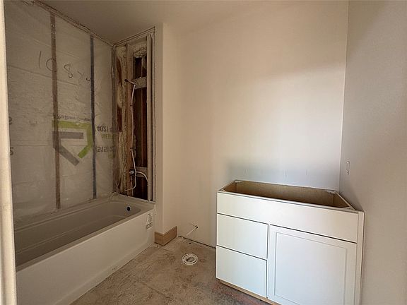 The primary suite is a true retreat with a 5x5 tiled shower, soaker tub, private commode room, dual vanities & a large walk-in closet with direct access to the laundry room. The laundry space includes a built-in utility sink for added convenience.