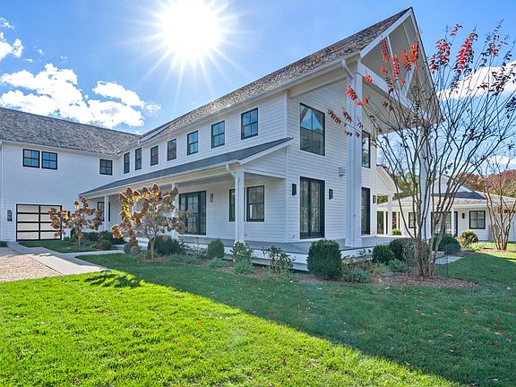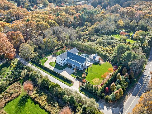 Welcome to this exceptional estate set on 1.3 beautifully landscaped acres, offering the perfect blend of modern sophistication and timeless craftsmanship. Wrapped in classic cedar shingle siding with a welcoming covered front porch, this home exudes warmth and understated elegance from the moment you arrive. The circular driveway provides ample parking, while an electric gated entry ensures privacy and security. Across from a scenic preserve and orchard, the setting offers tranquility and natural beauty at every turn-an ideal retreat for those seeking comfort, space, and refined living. Inside, soaring double-height ceilings and exposed reclaimed wood beams crown the great room, where a grand fireplace and walls of French doors fill the space with natural light. The chef's kitchen is a true showpiece, featuring a center island, Viking professional appliances, dual ovens and dishwashers, a wine fridge, and a butler's pantry. The first level also includes an elegant powder room, a spacious laundry room with dual washers and dryers, and an attached four-car garage equipped with an electric car charger. The primary suite offers a private haven with its own fireplace, two walk-in closets, and a luxurious en suite bath with dual vanities, a soaking tub, and a large glass shower, plus a private sitting room or office. Upstairs, a loft-style family room overlooks the great room below, surrounded by five guest suites-each with custom closets and radiant-heated bathrooms featuring floating vanities and brushed nickel Emtek hardware. The finished lower level expands the living space with a large tiled recreation room, full bath, and walkout access-perfect for a gym, home theater, or studio. Outside, find resort-inspired living: a gunite pool with spa and waterfall, a pool house with powder room, outdoor shower and changing room, and a full basement beneath the pool house-ideal for storing patio furniture and seasonal items. Bluestone patios and a covered dining terrace plumbed for an outdoor kitchen enhance the setting, while manicured lawns, mature trees, and lush plantings create a private oasis with room for tennis-an extraordinary property designed for refined living and effortless entertaining.
