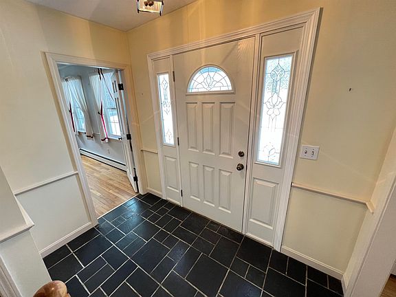 This 3 bedroom cape, spacious rooms, beautiful hardwood flooring, attached 2 car garages is conveniently located at 275 North Rd in Walpole, NH. As you enter the front door the well sized living room is on the left, dining room is to the right, central hall stairway taking you to second floor or through to the family room and spacious kitchen. Formal living room features built in bookshelves, hardwood floors and a wood burning fireplace. The dining room with chair rail trim, and could be used as a first floor bedroom since it's only steps from the full first floor bathroom. The comfortable family room offers a wood stove, French door allows access deck and is joined to the large eat in-kitchen. Cupboards abound with a long counter space that will bring a smile to most cooks. Mud room is off the kitchen with laundry, large coat closet, access to full bath, and entrance to the 2 car garage makes this an essential space. At the top of the stairs is a large bedroom running from front to back with a large double closet. 3/4 bath has newly installed walk in shower. The second bedroom is nicely sized and the smaller bedroom is a bit quirky with a tilted window. Two bedrooms have carpet with hardwood under the carpets. If this isn't enough space the full basement has built in storage shelves, cedar closet, Buderus furnace and could easily be finished off to add more living space. Open House Saturday Feb 18th, 10:00am -11:30