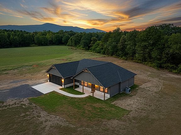 Beautifully constructed, brand new home situated on 3.19 picturesque acres! With 360 mountain views, pastureland, and big skies, this property will provide the tranquility of country life, with the convenience of being just minutes from downtown Mena! The home features 3 spacious bedrooms, two full baths including a custom glass shower in the primary suite, and an enticing soaking tub in the other. The open concept living space has high vaulted ceilings and features a beautiful chandelier lighting fixture. Additional Features include BRAND NEW stainless steel appliances, quartz countertops with a large island, 100% waterproof luxury vinyl flooring throughout, modern attractive fixtures, custom tiling in both bathrooms, extremely durable exterior lap siding, and a 30 year shingle roof! The home also includes a spacious 2 Car GARAGE! IF you're looking for a Turn-Key, BRAND NEW property in a stunning location, this is it!