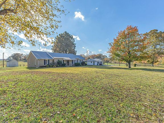 Beautiful 2 bedroom, 2 bath brick/vinyl farmhouse ~ 185.7 Rolling acres ~ Gas fireplace ~ Spacious eat-in kitchen ~ Large den ~ Knotty pine throughout ~ Security doors ~ Covered porch & patio ~ Paved circle drive ~ 7 Scenic ponds ~ 5 Bay storage building with lean-to ~ Fenced & cross fenced ~ Mix of wooded areas & open pastures ~ Stunning views ~ Multiple stock barns (one with hay loft) ~ Lots of natural beauty ~ Standout opportunity for developers, investors, contractors & long-term landholders ~ Would make a great equestrian community ~ Ideal for a live-and-work property