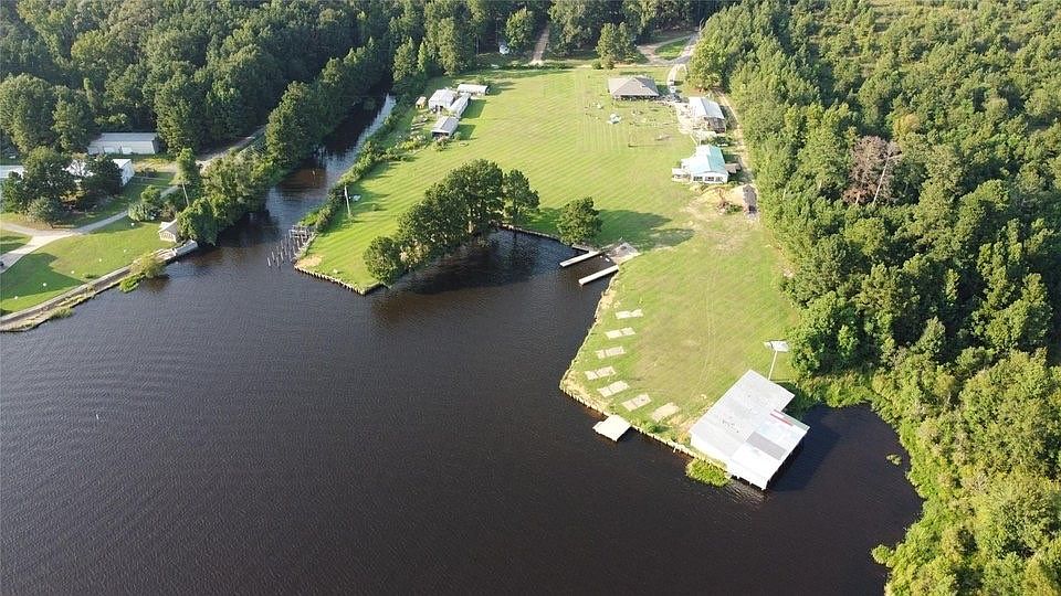 This is a stunningly beautiful section of the property that has lake frontage on Grand Bayou Reservoir. Private road leads to south facing views overlooking the lake . This is a very quiet and serene point. Boathouse is designed to be removeable. This property has a long, deep, and wide boat ramp with three new docks built in 2021. This is an ideal location to build your dream home or weekend lake house One hour south of Shreveport. Great for the outdoorsman. Seller offers allowance for removal of the old store. Store rafters and stud walls are in great shape Property has electric, water and septic system. Outside the city limits and may qualify for no money down rural development loan.