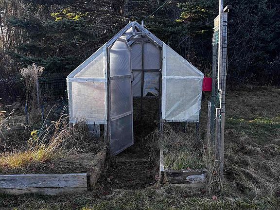 Kitchen that welcomes guestsCovered front porchMetal roofWood stoveTwo heat pumpsRaised garden bedsApple trees