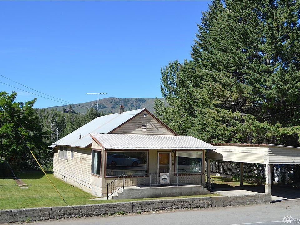 Located on the main street of downtown Winthrop, this property consists of 4 city lots with 120 feet fronting on Riverside Avenue, and 120 feet riverfront overlooking the confluence of the Methow River and Chewuch River. Vintage 1921 stick-built home has two bedrooms, 1 full bath, kitchen with dining area and large living room and detached 2 car carport. Perfect location for in-town living or for any commercial endeavor needing high visibility. Nightly rental possibilities. Sold - AS IS