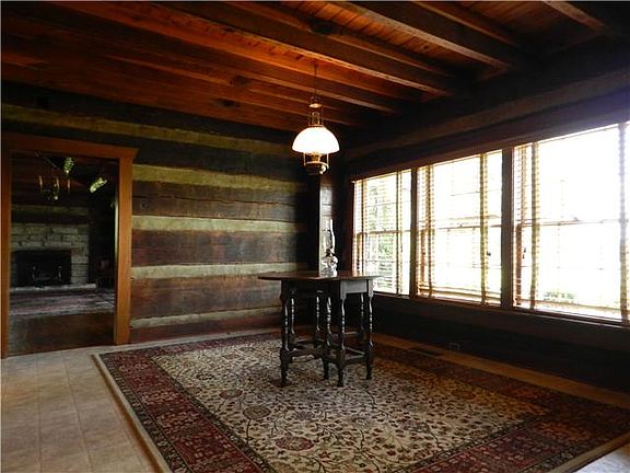 Charming 1800's style log cabin sitting on 7 gorgeous acres with well manicured landscaping. Home has open floor plan with spacious loft. New carpet and beautiful wood flooring. Screened in porch off of the back of home. Large barn in back.