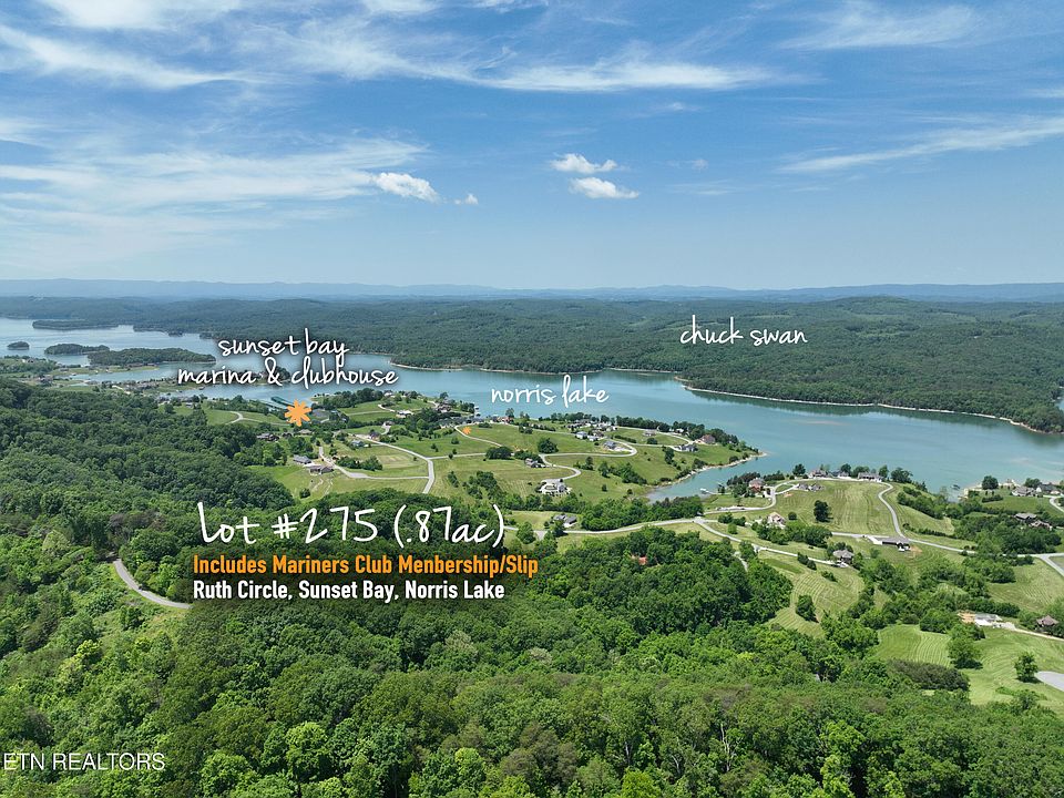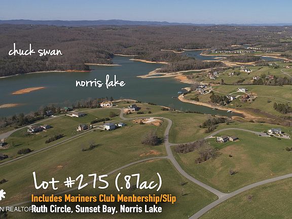 BONUS: includes a Membership/Private Marina Slip** Lot #275, with .87 acres, mostly cleared and on an gently elevated slope, w/lots of build options for amazing views! With a home at just the right elevation it could have left to right Norris Lake views. Parcel is level from road for easy drive way. ALL utilities already on site make for affordable construction costs. Just a short drive to developments entrance and Sunset Bays' exceptional amenities: Clubhouse, Private Marina, pool, tennis courts & recently expanded fitness center. Live the Lake life recreational dream from Sunset Bay. Premier Woodlake Golf Club only a few miles away! Sunset Bay is a must see!!