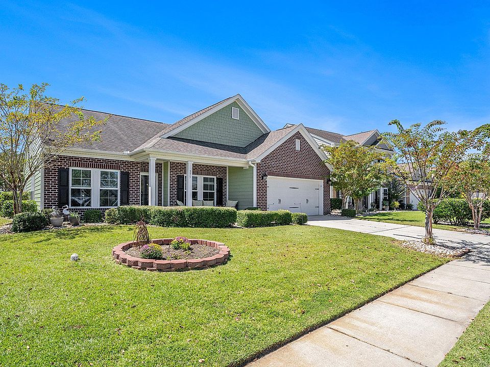 In the sought-after gated section of Saint David’s Township within Windsor Plantation, 275 St. Davids Avenue offers serene pond views, timeless style, and a prime Myrtle Beach location. This beautifully maintained single-level home features an open split floor plan with three bedrooms, two baths, a formal dining room, and a dedicated office with French doors—perfect for work or quiet retreat. A bright sunroom/ sitting area off the breakfast area invites you to relax and take in the tranquil views. At the heart of the home, the kitchen showcases granite countertops, a full stainless steel appliance package including a gas range, and a deep pantry for all your culinary essentials. Gorgeous oak floors flow through the main living areas adding warmth and the vaulted ceiling enhance the open layout. The primary suite, privately positioned at the back of the home, offers comfort and privacy along with water views. The spacious primary bathroom includes double sinks, a soaking tub, a large, tiled shower, and a generous walk-in closet. Built in 2014, with only one owner, the home’s brick and Hardie plank exterior provides both curb appeal and durability. The two-car garage features pull-down attic stairs for added storage, while mature landscaping and a full sprinkler system enhance the property’s charm. A gas water heater—replaced in 2021—and gas heating deliver year-round comfort and efficiency. Living here offers so much more than just a home—it’s a lifestyle. With a gated entrance, community pool with a kiddie pool, hot tub, large clubhouse with full kitchen, screened area and a gym... and low HOA fees... you can enjoy amenities just steps from your door. Best of all, you’re less than five miles from the sand at Surfside Beach and moments away from shopping, dining, and all that Myrtle Beach area has to offer. This is where your next chapter begins. This seller is even including a home warranty to make your move worry-free.