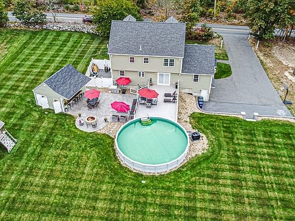 This 6 year old Colonial style home literally has it all. Home features 4 bedrooms, 2 full baths & 2 half baths. Open concept design with hardwood floor throughout the first floor, custom kitchen with stainless steel appliances & granite countertops plus a large pantry. Family room has cathedral ceiling, ceiling fans & gas fireplace. Second floor offers 3 bedrooms plus the master suite with large custom tiled master bath & walk in closet. Now head outside onto the Trex deck overlooking one of the nicest yards in Dracut with a huge above ground pool, stamped concrete patio with built in fireplace, outdoor bar with granite countertops, full sink, half bath & storage shed. The home also includes a Generac whole house generator, whole house humidifier, tankless water heater, large walk up attic for storage or future expansion Plus irrigation system with 13 zones. Home is located in Campbell School district & minutes to Route 93.