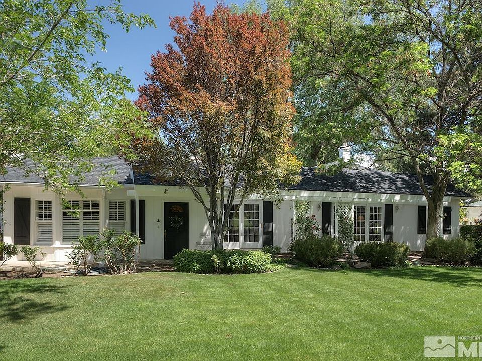 This charming cottage on .38 of an acre sits on an iconic street across from the Washoe County golf course. Easy living one-level home with all of the important updates over the years including a composition roof and new mechanical system. The main house is 2049, and the guest house, lovingly called "the coop", is approximately 300 sf of cozy, adorable space if you need a extra bedroom/bath. Don't miss seeing it!, Lovely, deep front yard graced with mature, old growth trees, grassy lawn, privacy shrubs and roses climbing across the front brick patio latticework. The back yard is completely fenced, secured and private. Terrific 100s.f. flex building works well for an office, exercise, or art studio. 2-car detached garage with Tesla charging station, features a loft storage area and RV storage area next to garage. Charming and updated!