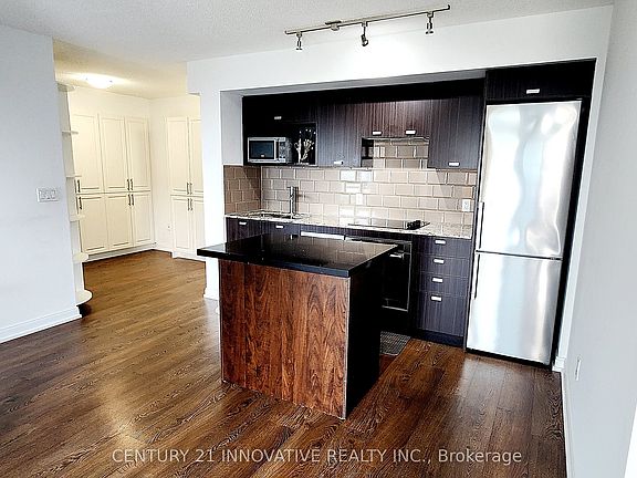 Luxury Building, Tridel Built 5yrs Condo, 2 Bedrooms + Den With Built-In Cabinets + 2 Lockers (Good For Downsizing) 2 Full Bath + 1 Parking, Corner Unit. Split Bedroom Unit Layout, Modern Kitchen W/Stone Countertop & Island Table, Laminate Floor Throughout, Mins Walk To Ttc Stop, Close To Hwy 401, Great Amenities: Party Room, Guest Room, Steam Room, Billiard, Fitness, Studio, Lots Of Visitors Parking. Internet Included In The Maintenance Fee. Note: Seller Willing To Remove The Den Built in Cabinets.