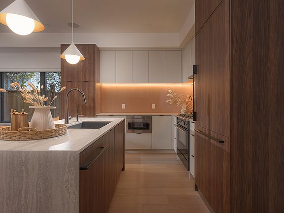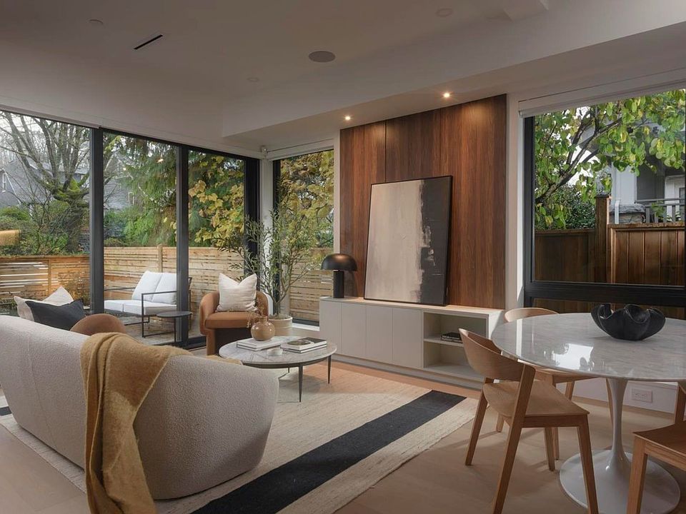 Crafted by Vandwell Developments, this brand-new 4 bed, 4.5 bath 1,969sqft side-by-side half duplex in coveted Cambie Village pairs refined design with effortless indoor–outdoor living. A panoramic private rooftop deck captures sweeping mountain, skyline views and sunsets. Floor-to-ceiling windows flood the main level with light and open to 2 secured patios, perfect for entertaining. Inside, seamless glass railings, built-in sound and a sleek chef’s kitchen create a calm modern backdrop. Upper bdrms enjoy treed and city outlooks, while a heated crawl space offers exceptional storage. All on a quiet, tree-lined street steps to shops, parks, restaurants, Canada Line, plus top public and private schools.