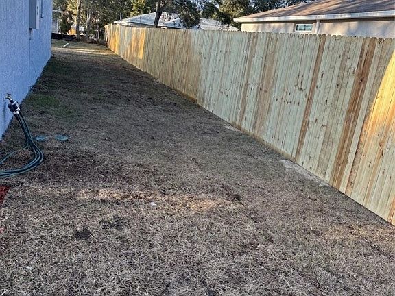 NEW CONSTRUCTION. MOVE-IN READY! This Key West Model offers 3 bedrooms and 2 bathrooms, 1,405 square feet of comfortable living space, and a privacy fence along the right side of the home. It is built with solid concrete block construction and a 30-year architectural shingle roof, and it includes energy-efficient double-pane windows and a 10-year structural warranty for peace of mind. The living room feels open with its vaulted ceiling, and the kitchen includes stainless steel appliances, custom white shaker cabinets with soft-close drawers, granite countertops, a kitchen pantry, and luxury vinyl plank flooring that continues throughout the home. The master suite is the largest the builder offers and includes a glass-enclosed shower with clean, upgraded tile, along with a tub-and-shower combo in the main bathroom. The home also provides a covered patio, an attached 2-car garage with opener and remotes, no HOA fees for easy living, and a desirable flood zone X location that stays high and dry and does not require flood insurance.